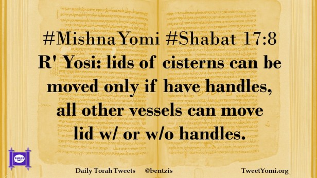 #MishnaYomi #Shabat 17:8 R’ Yosi: lids of cisterns can be moved only if have handles, all other vessels can move lid w/ or w/o handles.