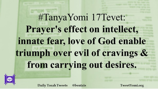#TanyaYomi 17Tevet: Prayer’s effect on intellect, innate fear, love of God enable triumph over evil of cravings & from carrying out desires.