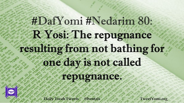 DafYomi, Nedarim #DafYomi #Nedarim 80 Date: March 2, 2023Author: netanelspitz #DafYomi #Nedarim 80: R Yosi: The repugnance resulting from not bathing for one day is not called repugnance. Share this: Share on X (Opens in new window) X Share on Facebook (Opens in new window) Facebook Like Loading... Related