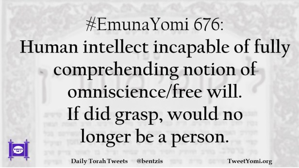 #EmunaYomi 676: Human intellect incapable of fully comprehending notion of omniscience/free will. If did grasp, would no longer be a person.
