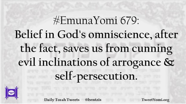 #EmunaYomi 679: Belief in God’s omniscience, after the fact, saves us from cunning evil inclinations of arrogance & self-persecution.