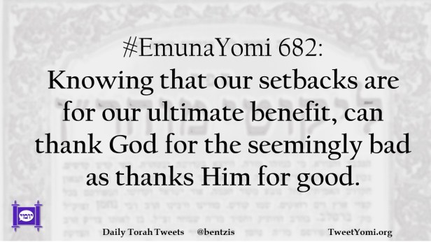 #EmunaYomi 682: Knowing that our setbacks are for our ultimate benefit, can thank God for the seemingly bad as thanks Him for good.