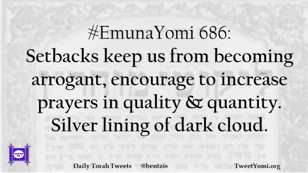 #EmunaYomi 686: Setbacks keep us from becoming arrogant, encourage to increase prayers in quality & quantity. Silver lining of dark cloud.