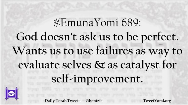 #EmunaYomi 689: God doesn’t ask us to be perfect. Wants us to use failures as way to evaluate selves & as catalyst for self-improvement.