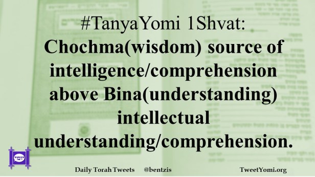 #TanyaYomi 1Shvat: Chochma(wisdom) source of intelligence/comprehension above Bina(understanding) intellectual understanding/comprehension.