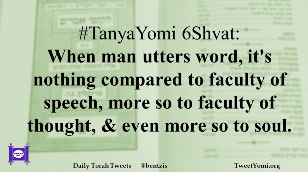 #TanyaYomi 6Shvat: When man utters word, it’s nothing compared to faculty of speech, more so to faculty of thought, & even more so to soul.
