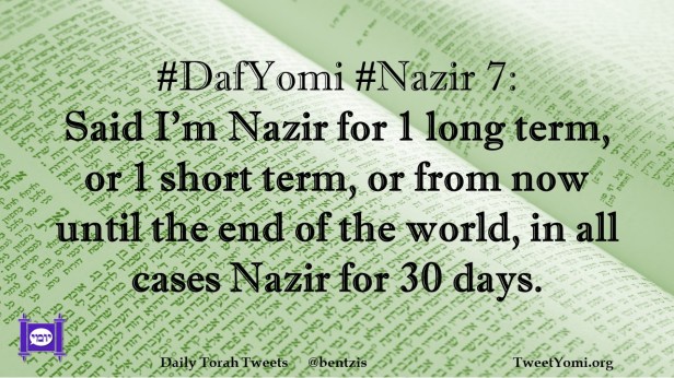 DafYomi, Nazir #DafYomi #Nazir 7 Date: March 14, 2023Author: netanelspitz #DafYomi #Nazir 7: Said I’m Nazir for 1 long term, or 1 short term, or from now until the end of the world, in all cases Nazir for 30 days. Share this: Share on X (Opens in new window) X Share on Facebook (Opens in new window) Facebook Like Loading... Related