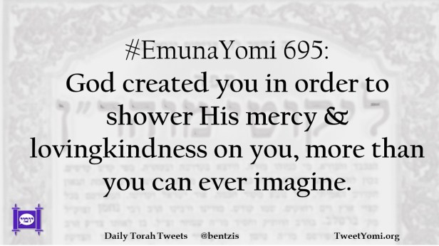 EmunaYomi #EmunaYomi 695 Date: March 14, 2023Author: netanelspitz #EmunaYomi 695: God created you in order to shower His mercy & lovingkindness on you, more than you can ever imagine. Share this: Share on X (Opens in new window) X Share on Facebook (Opens in new window) Facebook Like Loading... Related