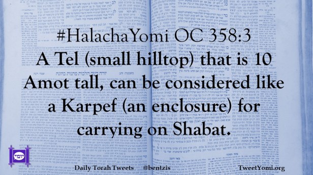 #HalachaYomi OC 358:3 A Tel (small hilltop) that is 10 Amot tall, can be considered like a Karpef (an enclosure) for carrying on Shabat.