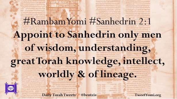 #RambamYomi #Sanhedrin 2:1 Appoint to Sanhedrin only men of wisdom, understanding, great Torah knowledge, intellect, worldly & of lineage.