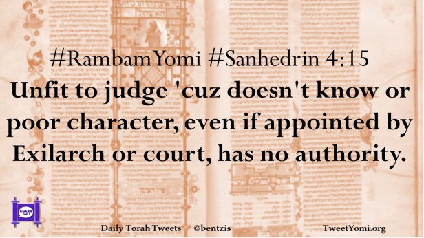 #RambamYomi #Sanhedrin 4:15 Unfit to judge ‘cuz doesn’t know or poor character, even if appointed by Exilarch or court, has no authority.