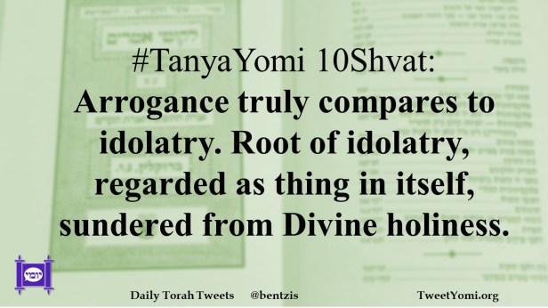 #TanyaYomi 10Shvat: Arrogance truly compares to idolatry. Root of idolatry, regarded as thing in itself, sundered from Divine holiness.
