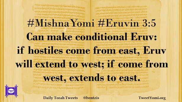 #MishnaYomi #Eruvin 3:5 Can make conditional Eruv: if hostiles come from east, Eruv will extend to west; if come from west, extends to east.