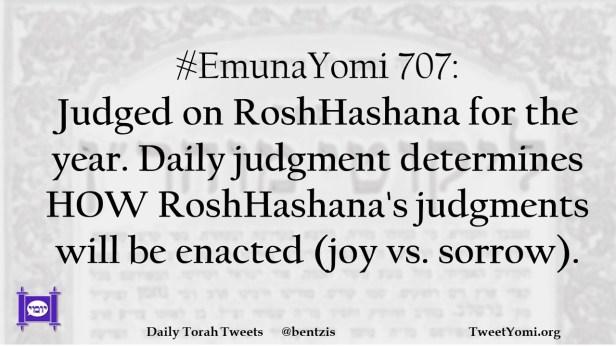 #EmunaYomi 707: Judged on RoshHashana for the year. Daily judgement determines HOW RoshHashana’s judgments will be enacted (joy vs. sorrow).