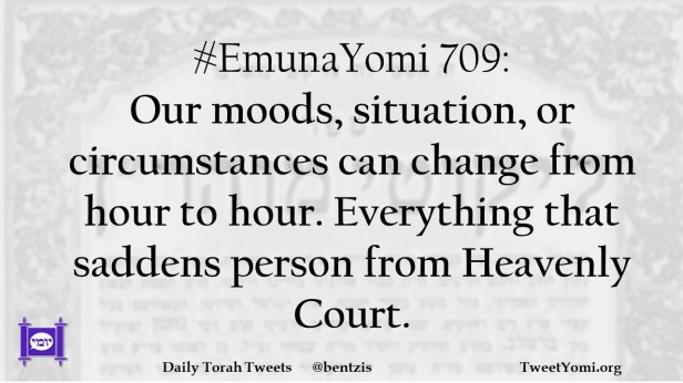 #EmunaYomi 709: Our moods, situation, or circumstances can change from hour to hour. Everything that saddens person from Heavenly Court.