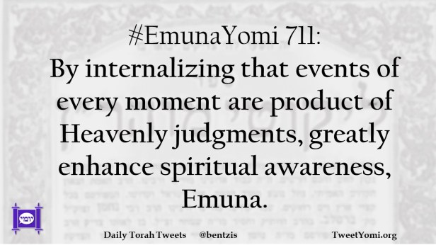 #EmunaYomi 711: By internalizing that events of every moment are product of Heavenly judgments, greatly enhance spiritual awareness, Emuna.