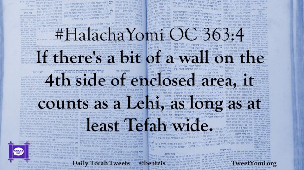 #HalachaYomi OC 363:4 If there’s a bit of a wall on the 4th side of enclosed area, it counts as a Lehi, as long as at least Tefah wide.
