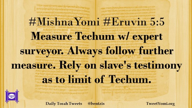 #MishnaYomi #Eruvin 5:5 Measure Techum w/ expert surveyor. Always follow further measure. Rely on slave’s testimony as to limit of Techum.