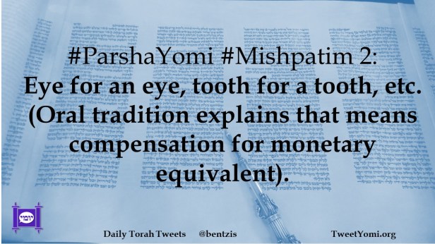 #ParshaYomi #Mishpatim 2: Eye for an eye, tooth for a tooth, etc. (Oral tradition explains that means compensation for monetary equivalent).