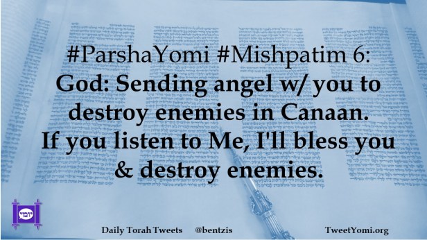 #ParshaYomi #Mishpatim 6: God: Sending angel w/ you to destroy enemies in Canaan. If you listen to Me, I’ll bless you & destroy enemies.