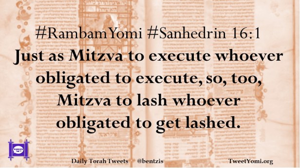 #RambamYomi #Sanhedrin 16:1 Just as Mitzva to execute whoever obligated to execute, so, too, Mitzva to lash whoever obligated to get lashed.