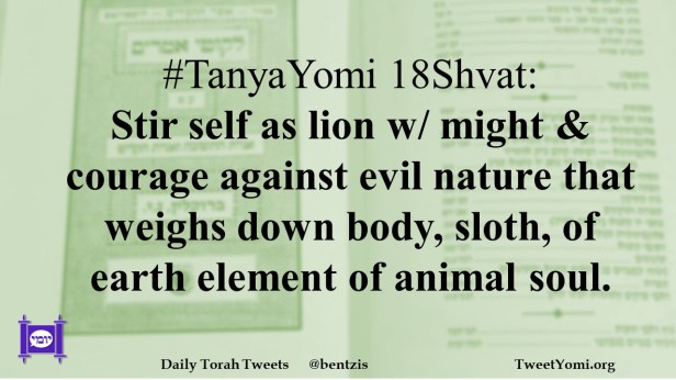 #TanyaYomi 18Shvat: Stir self as lion w/ might & courage against evil nature that weighs down body, sloth, of earth element of animal soul.