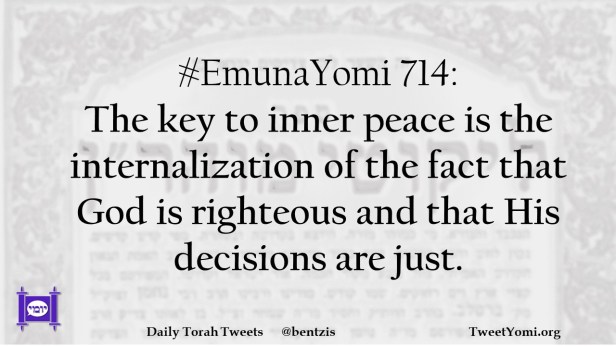 #EmunaYomi 714: The key to inner peace is the internalization of the fact that God is righteous and that His decisions are just.
