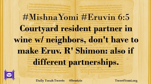 #MishnaYomi #Eruvin 6:5 Courtyard resident partner in wine w/ neighbors, don’t have to make Eruv. R’ Shimon: also if different partnerships.