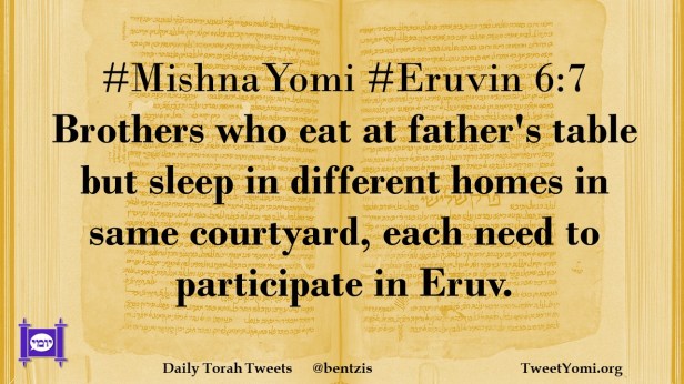 #MishnaYomi #Eruvin 6:7 Brothers who eat at father’s table but sleep in different homes in same courtyard, each need to participate in Eruv.