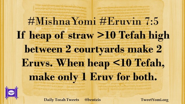 #MishnaYomi #Eruvin 7:5 If heap of straw >10 Tefah high between 2 courtyards make 2 Eruvs. When heap <10 Tefah, make only 1 Eruv for both.