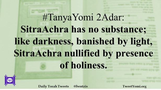 #TanyaYomi 2Adar: SitraAchra has no substance; like darkness, banished by light, SitraAchra nullified by presence of holiness.