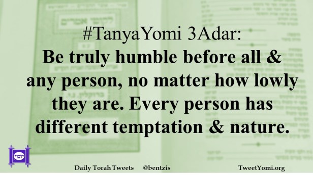 #TanyaYomi 3Adar: Be truly humble before all & any person, no matter how lowly they are. Every person has different temptation & nature.