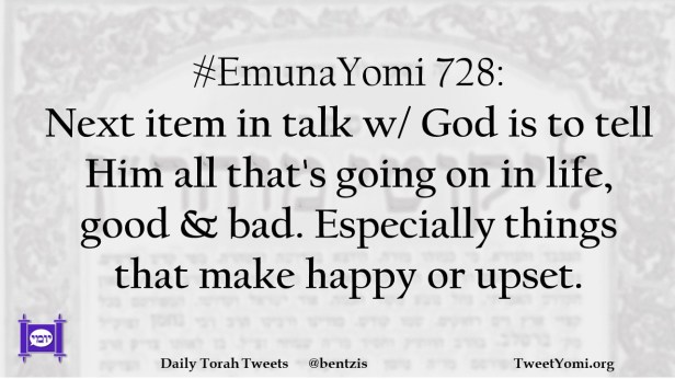 #EmunaYomi 728: Next item in talk w/ God is to tell Him all that’s going on in life, good & bad. Especially things that make happy or upset.