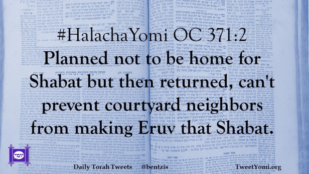 #HalachaYomi OC 371:2 Planned not to be home for Shabat but then returned, can’t prevent courtyard neighbors from making Eruv that Shabat.