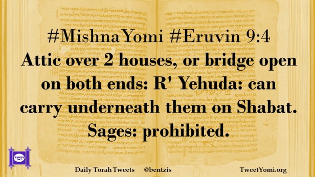 #MishnaYomi #Eruvin 9:4 Attic over 2 houses, or bridge open on both ends: R’ Yehuda: can carry underneath them on Shabat. Sages: prohibited.