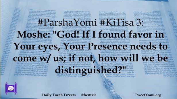 #ParshaYomi #KiTisa 3: Moshe: “God! If I found favor in Your eyes, Your Presence needs to come w/ us; if not, how will we be distinguished?”
