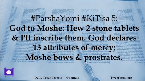 #ParshaYomi #KiTisa 5: God to Moshe: Hew 2 stone tablets & I’ll inscribe them. God declares 13 attributes of mercy; Moshe bows & prostrates.