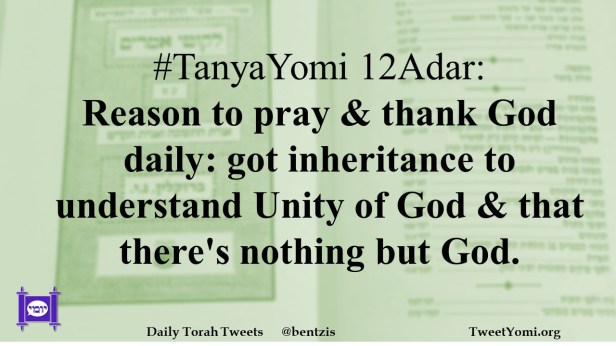 #TanyaYomi 12Adar: Reason to pray & thank God daily: got inheritance to understand Unity of God & that there’s nothing but God.