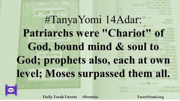 #TanyaYomi 14Adar: Patriarchs were “Chariot” of God, bound mind & soul to God; prophets also, each at own level; Moses surpassed them all.