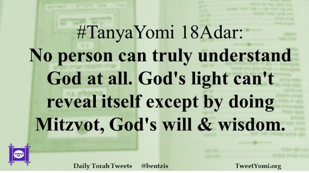#TanyaYomi 18Adar: No person can truly understand God at all. God’s light can’t reveal itself except by doing Mitzvot, God’s will & wisdom.