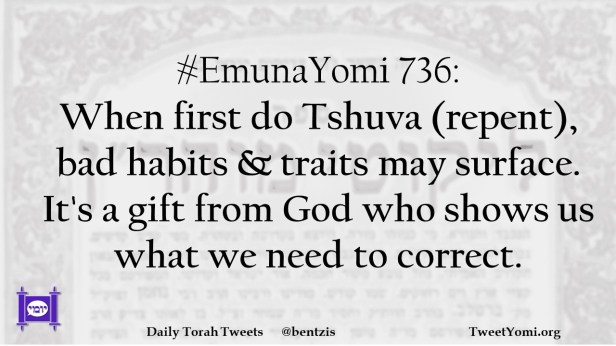 #EmunaYomi 736: When first do Tshuva (repent), bad habits & traits may surface. It’s a gift from God who shows us what we need to correct.