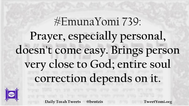 #EmunaYomi 739: Prayer, especially personal, doesn’t come easy. Brings person very close to God; entire soul correction depends on it.