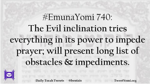 #EmunaYomi 740: The Evil inclination tries everything in its power to impede prayer; will present long list of obstacles & impediments.