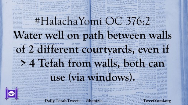#HalachaYomi OC 376:2 Water well on path between walls of 2 different courtyards, even if > 4 Tefah from walls, both can use (via windows).