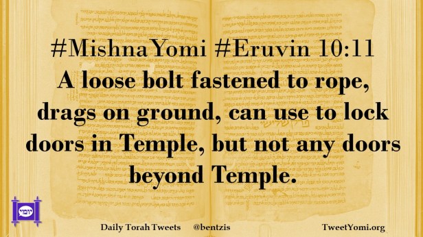 #MishnaYomi #Eruvin 10:11 A loose bolt fastened to rope, drags on ground, can use to lock doors in Temple, but not any doors beyond Temple.