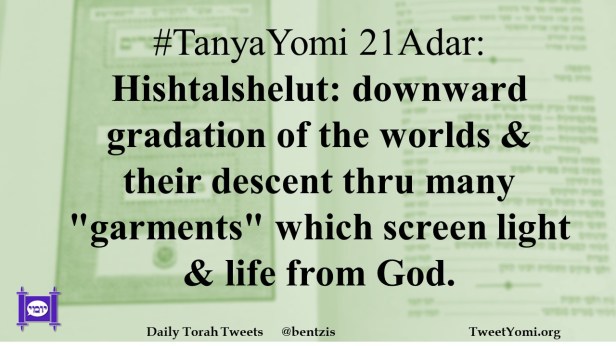 #TanyaYomi 21Adar: Hishtalshelut: downward gradation of the worlds & their descent thru many “garments” which screen light & life from God.