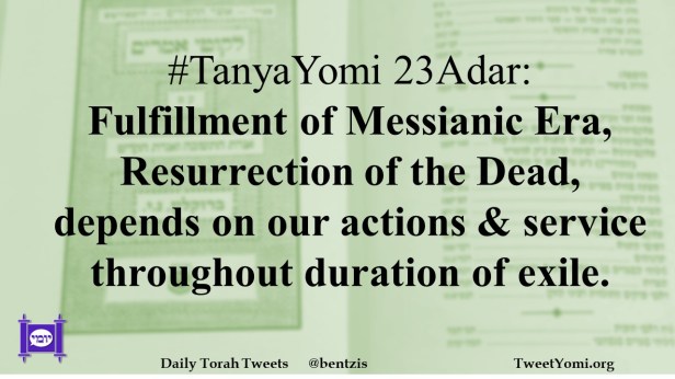 #TanyaYomi 23Adar: Fulfillment of Messianic Era, Resurrection of the Dead, depends on our actions & service throughout duration of exile.