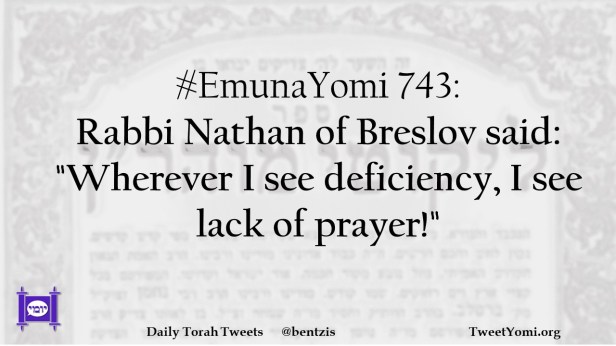 EmunaYomi #EmunaYomi 743 Date: March 24, 2023Author: netanelspitz #EmunaYomi 743: Rabbi Nathan of Breslov said: “Wherever I see deficiency, I see lack of prayer!” Share this: Share on X (Opens in new window) X Share on Facebook (Opens in new window) Facebook Like Loading... Related