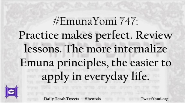#EmunaYomi 747: Practice makes perfect. Review lessons. The more internalize Emuna principles, the easier to apply in everyday life.