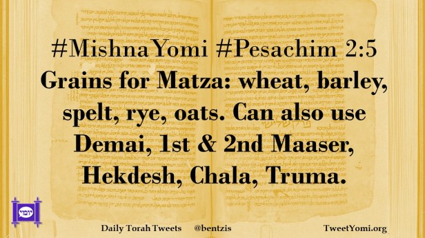 #MishnaYomi #Pesachim 2:5 Grains for Matza: wheat, barley, spelt, rye, oats. Can also use Demai, 1st & 2nd Maaser, Hekdesh, Chala, Truma.